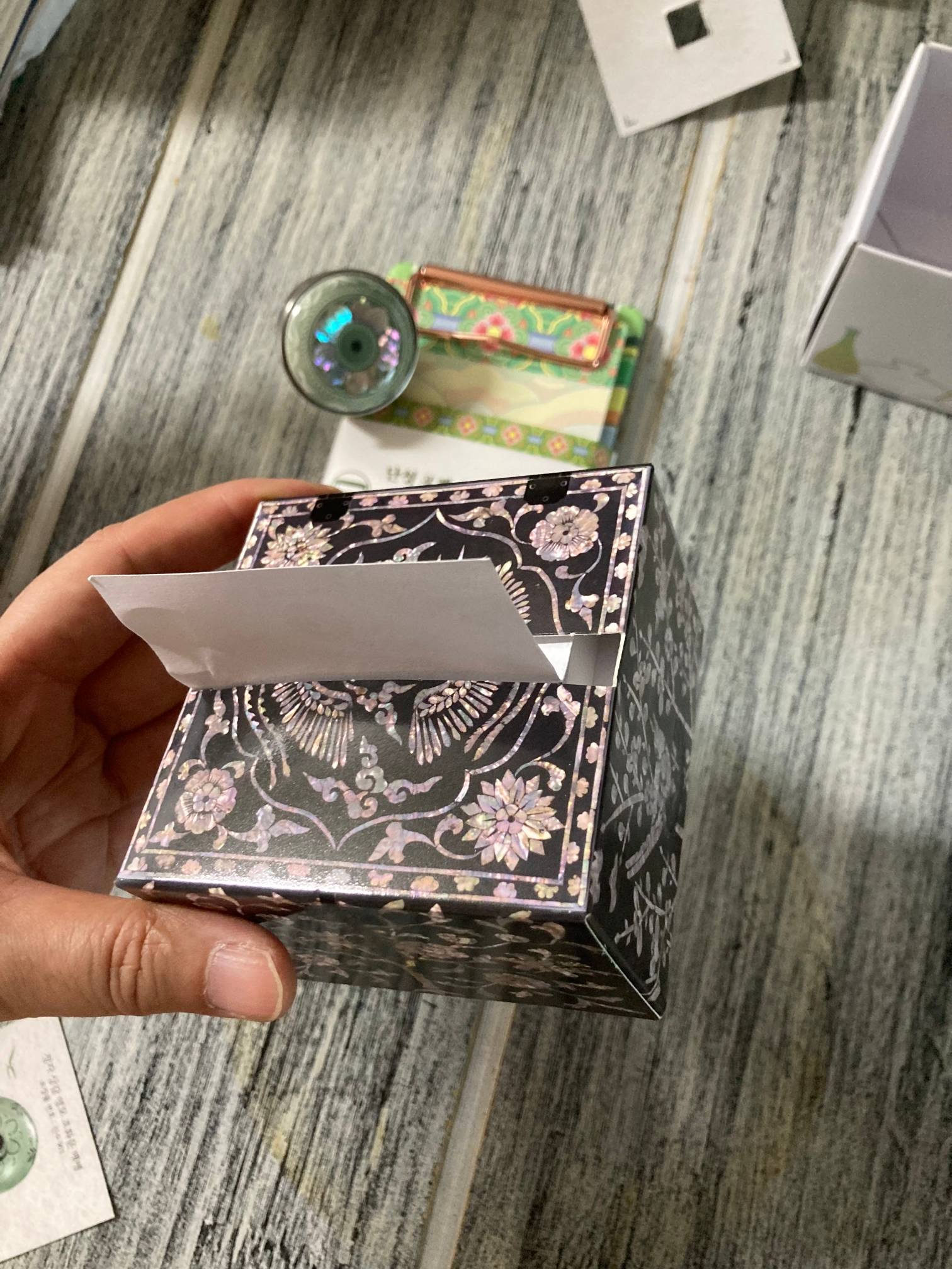 반짝이진 않아서 쫌 실망...그래도 나전무늬가 예쁘게 인쇄되어 있습니다??